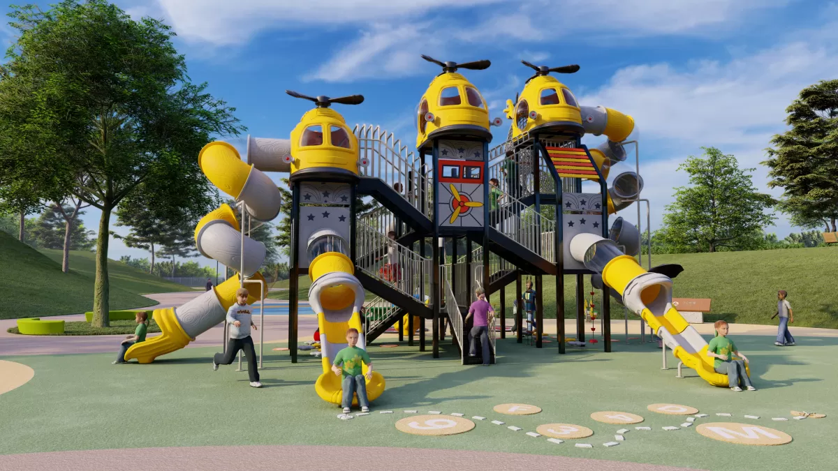 The Helicopter Series is designed to create a memorable aviation-themed play space for commercial projects. As a factory-direct playground equipment manufacturer, ZZRS supports custom layouts, color matching and OEM theme panels to fit your site size and budget. Send your site dimensions to get a layout suggestion and quotation.
